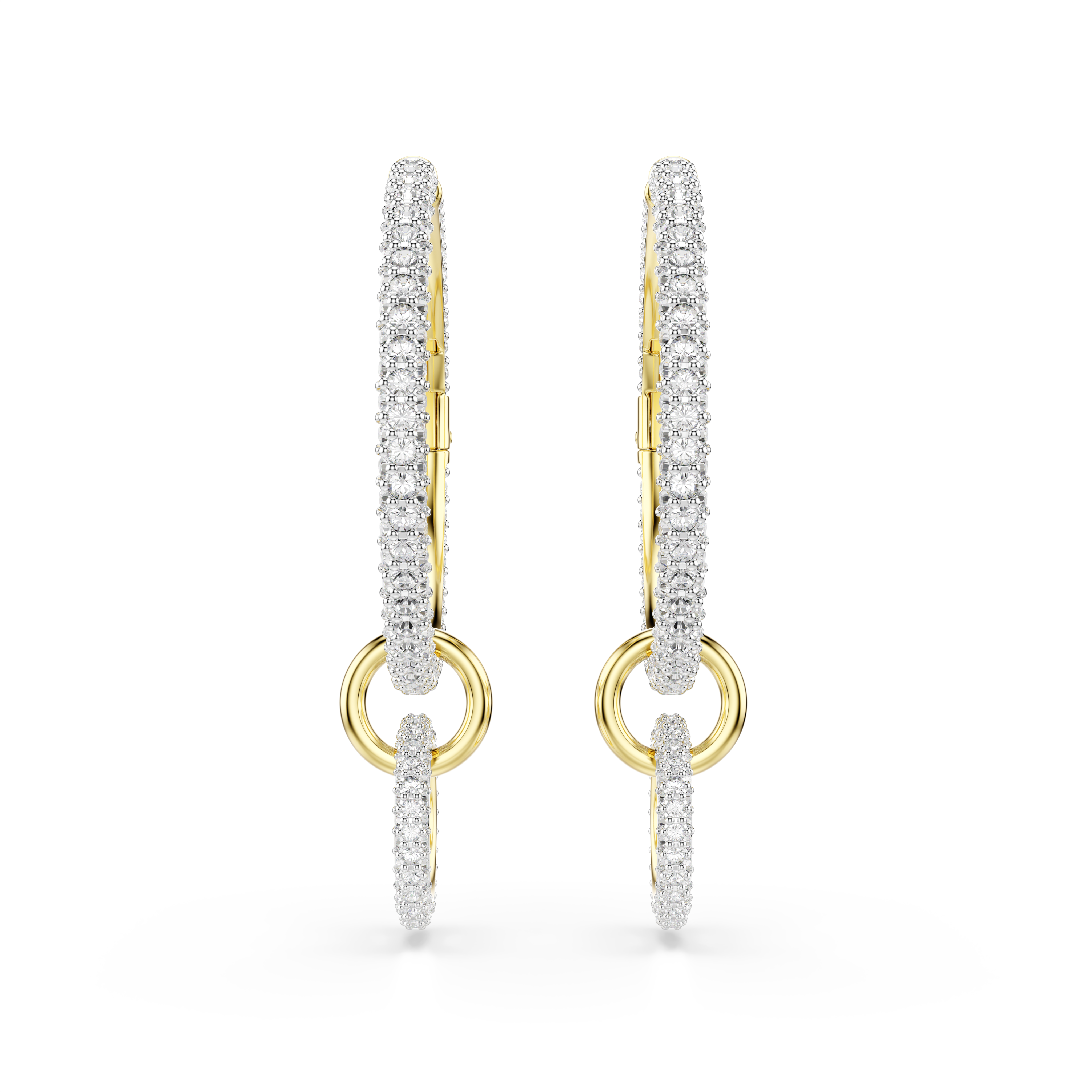 Придайте своим повседневным образам блеска с помощью этих изысканных сережек-колец. Каждая серьга состоит из трех соединенных между собой колец, имеет золотистое покрытие и украшена сверкающими прозрачными кристаллами. Для универсальности в создании образов, подвесную часть можно легко снять, что позволяет без труда менять их внешний вид.