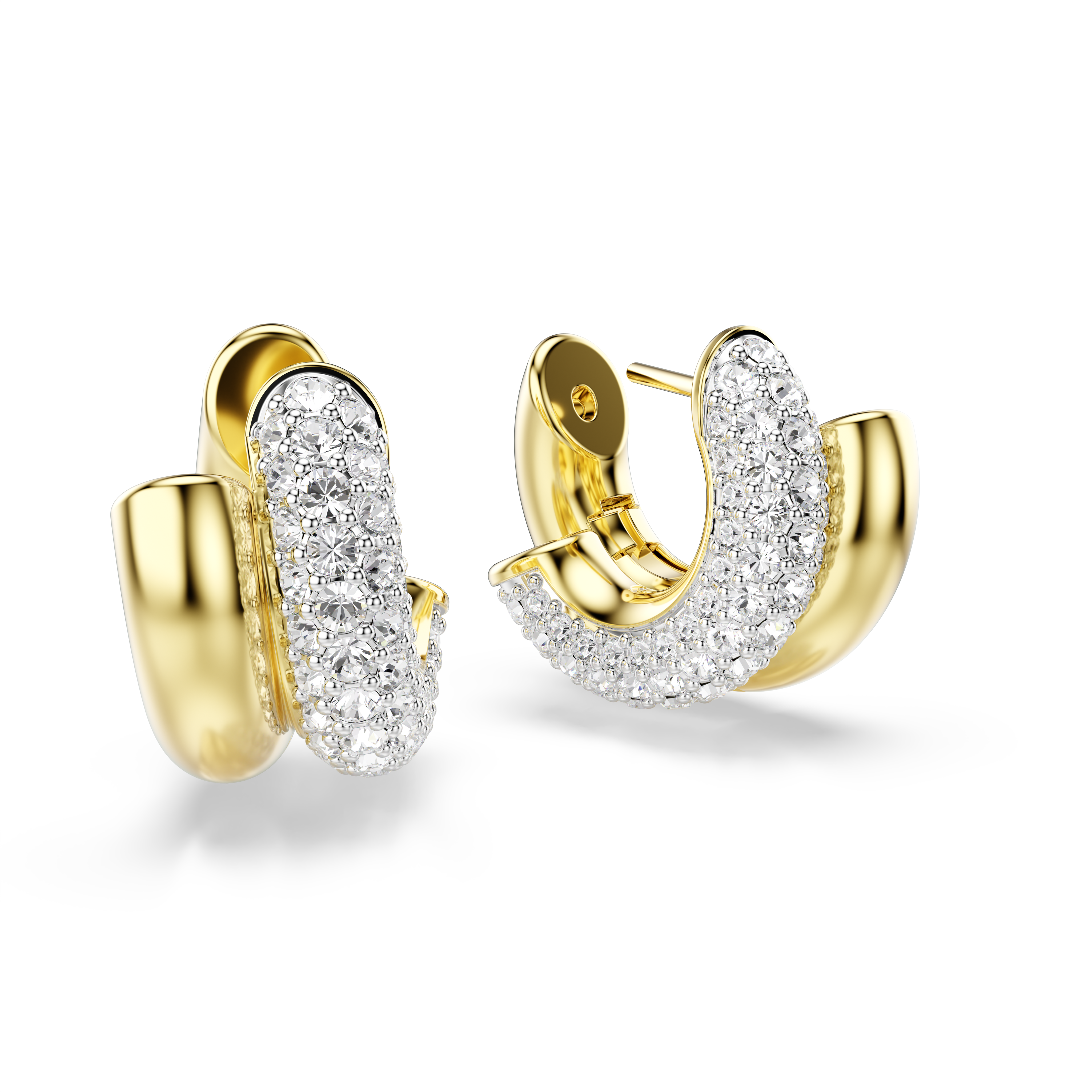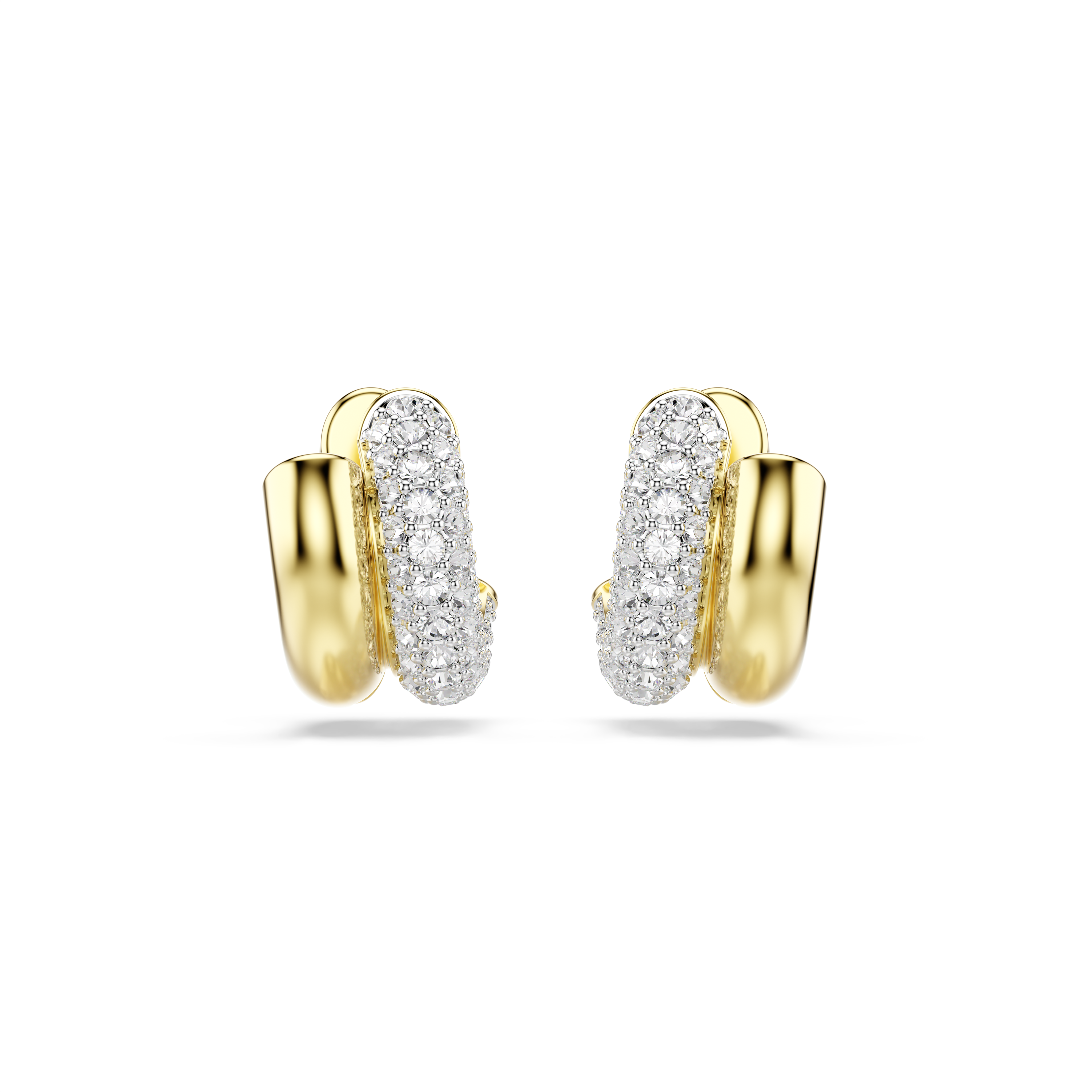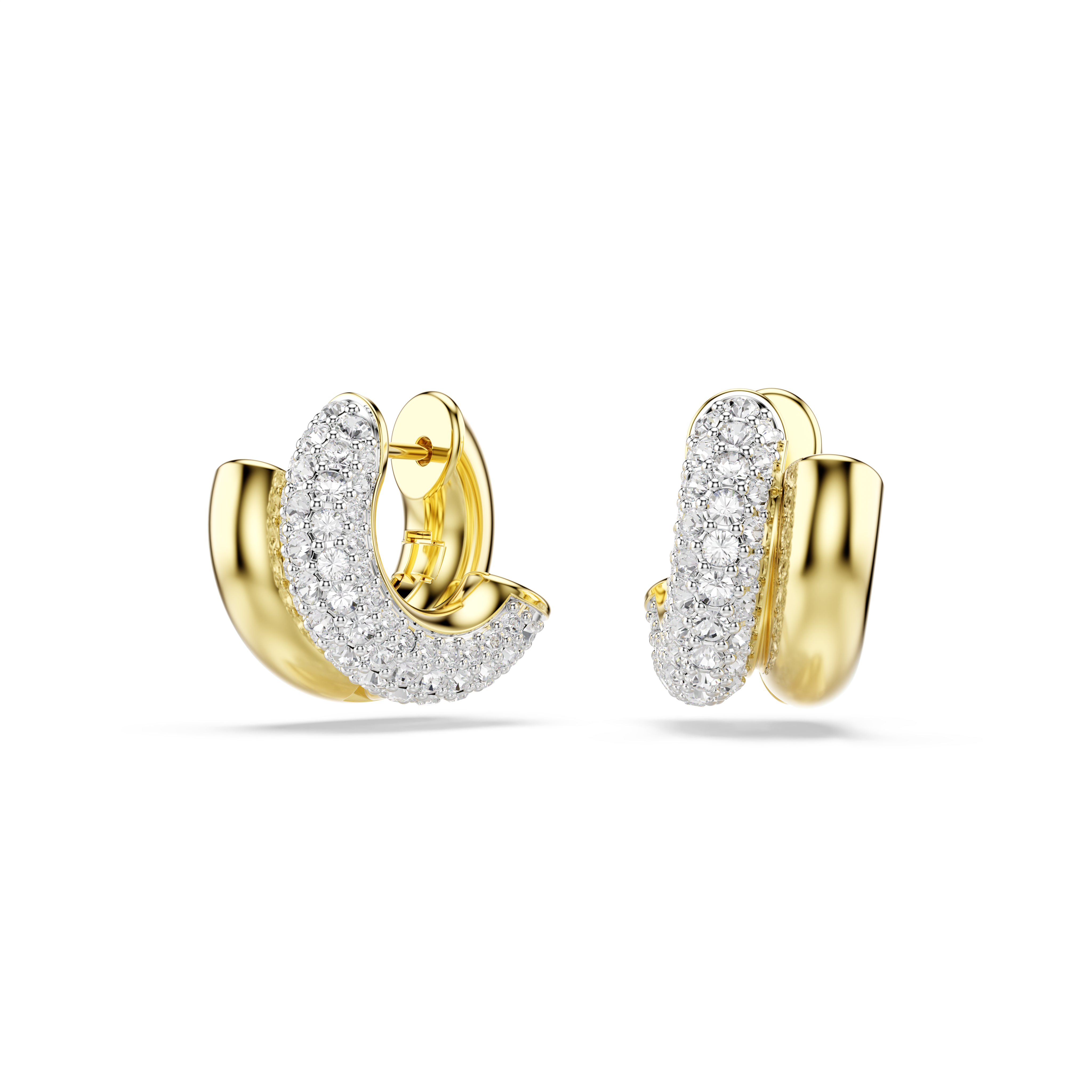 Эти серьги-кольца, воплощающие индустриальный стиль Dextera, сочетают в себе блестящую золотистую поверхность с инкрустацией из прозрачных кристаллов с одной стороны. Дополнительный пружинный механизм обеспечивает легкость надевания и снятия каждой серьги. Носите эти мини-кольца как эффектный аксессуар для создания как дневного, так и вечернего образа.