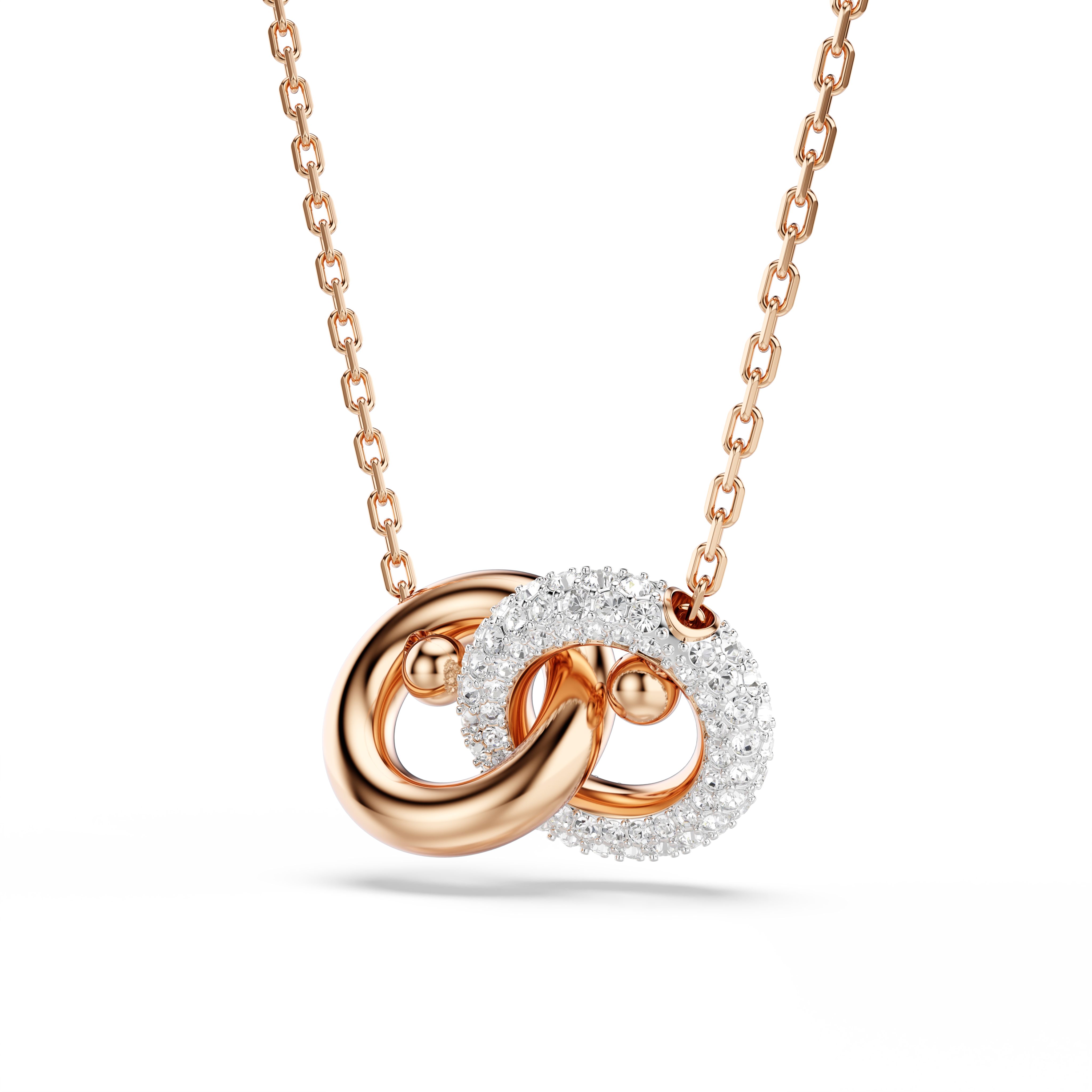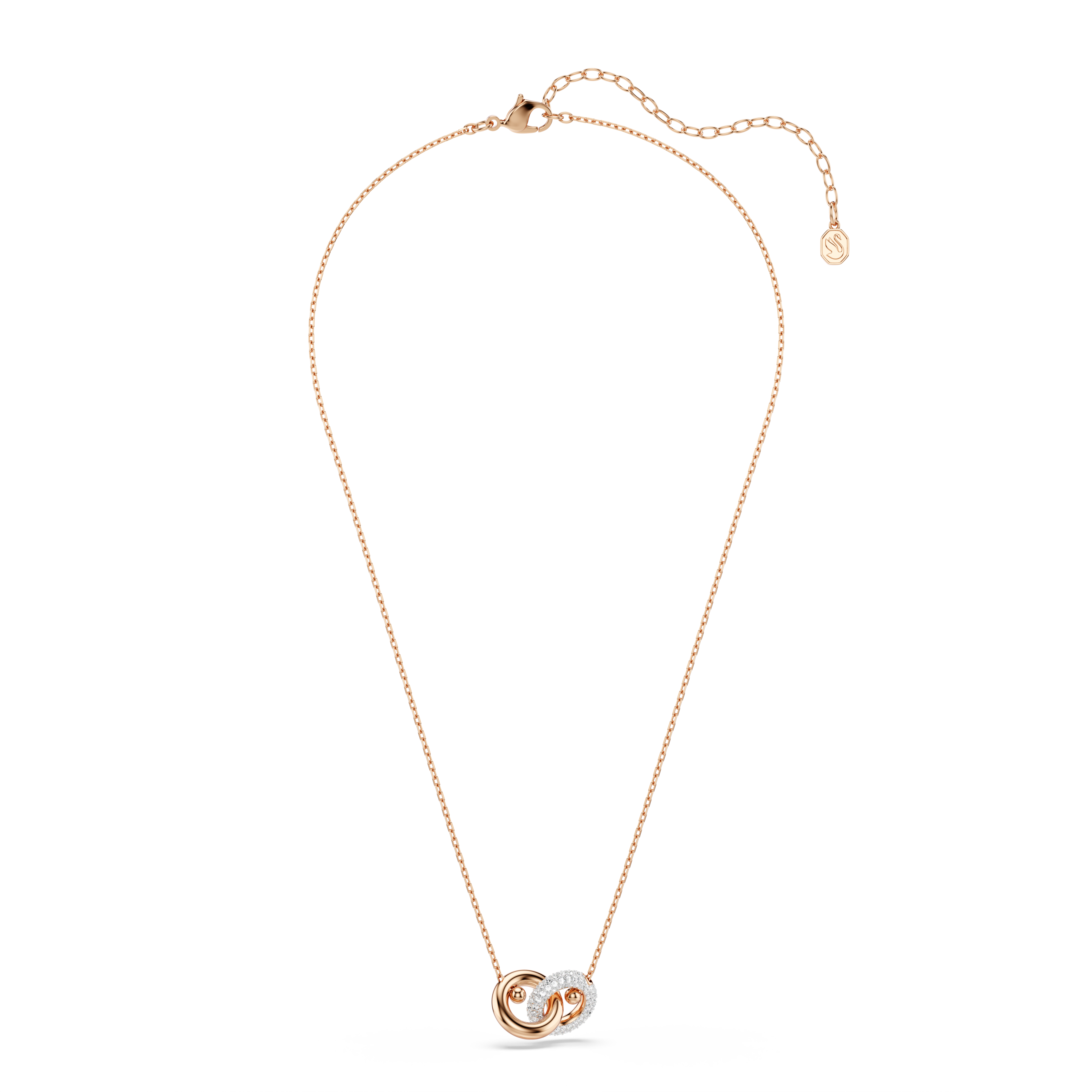 Ощутите дух единства с этим кулоном от Dextera. Дизайн с покрытием из розового золота состоит из двух соединенных между собой трубчатых колец, одно из которых сверкает паве. Сочетая смелые формы с сияющими прозрачными кристаллами, это завораживающее украшение подчеркнет роскошь вашего стиля.
