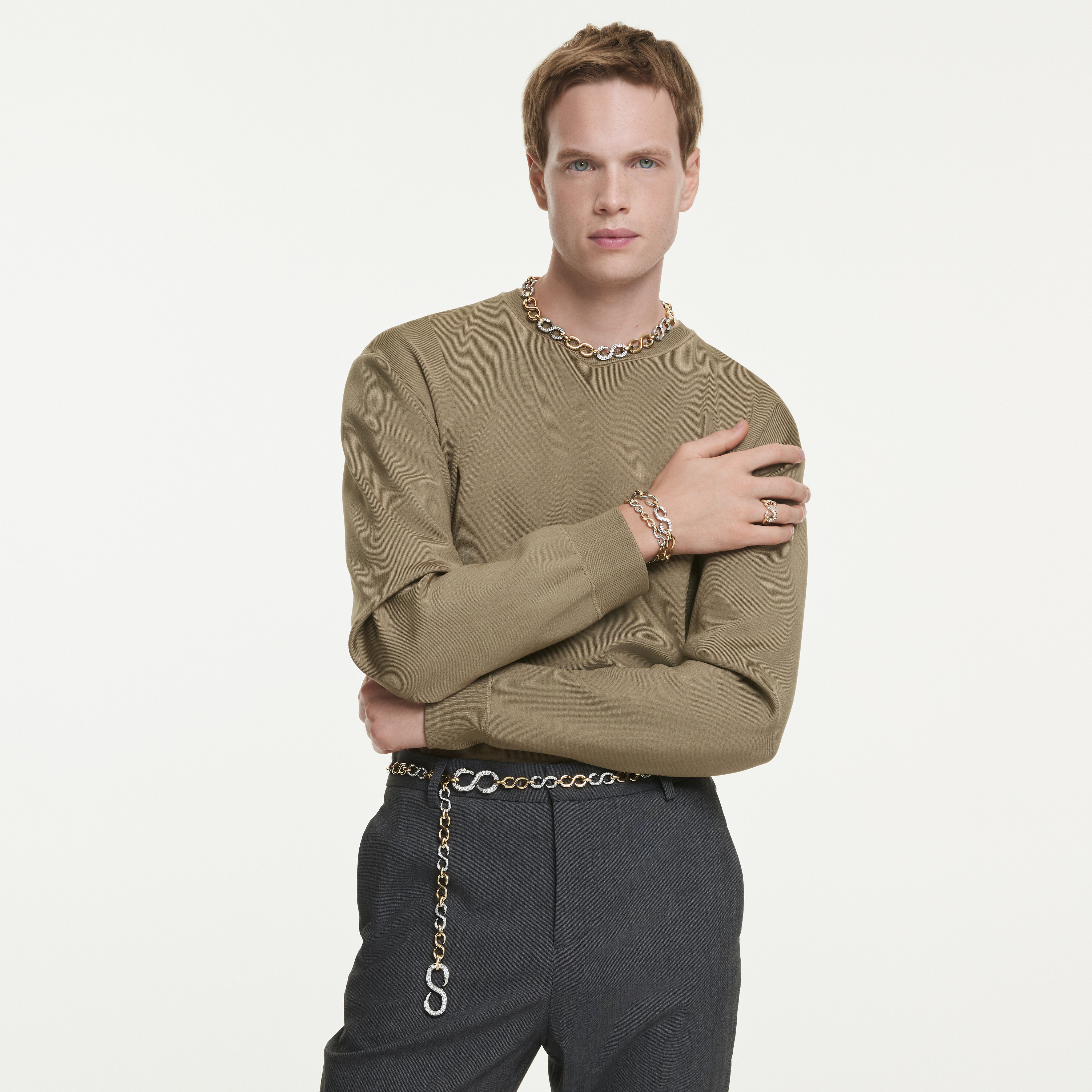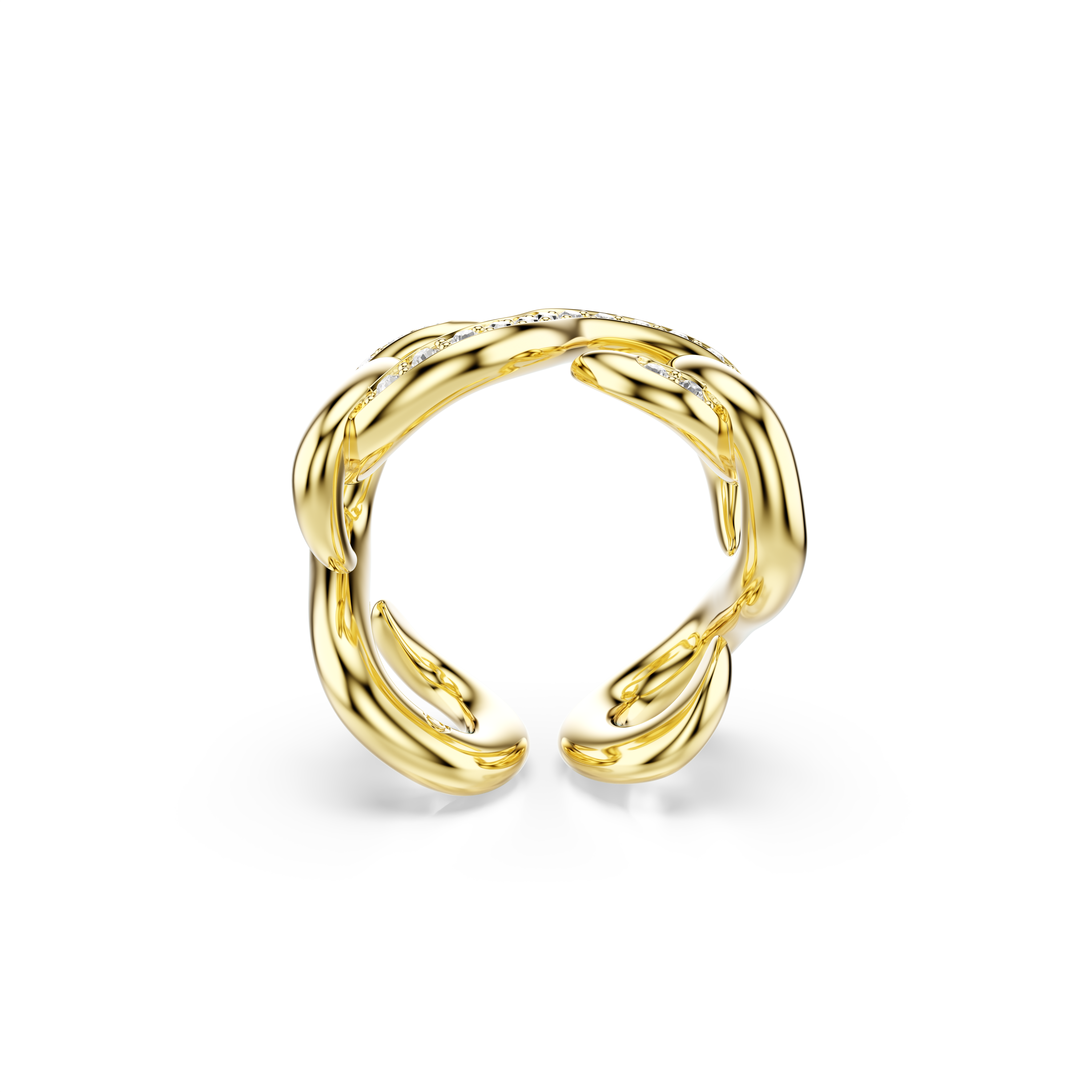 Благодаря изящным звеньям и ослепительному блеску, это кольцо Swarovski — яркий способ заявить о себе. Металл с золотистым покрытием воплощает индустриальный стиль Dextera и инкрустирован прозрачными кристаллами для максимального сияния. Носите его с другими украшениями из нашей коллекции, выполненными в том же характерном стиле.