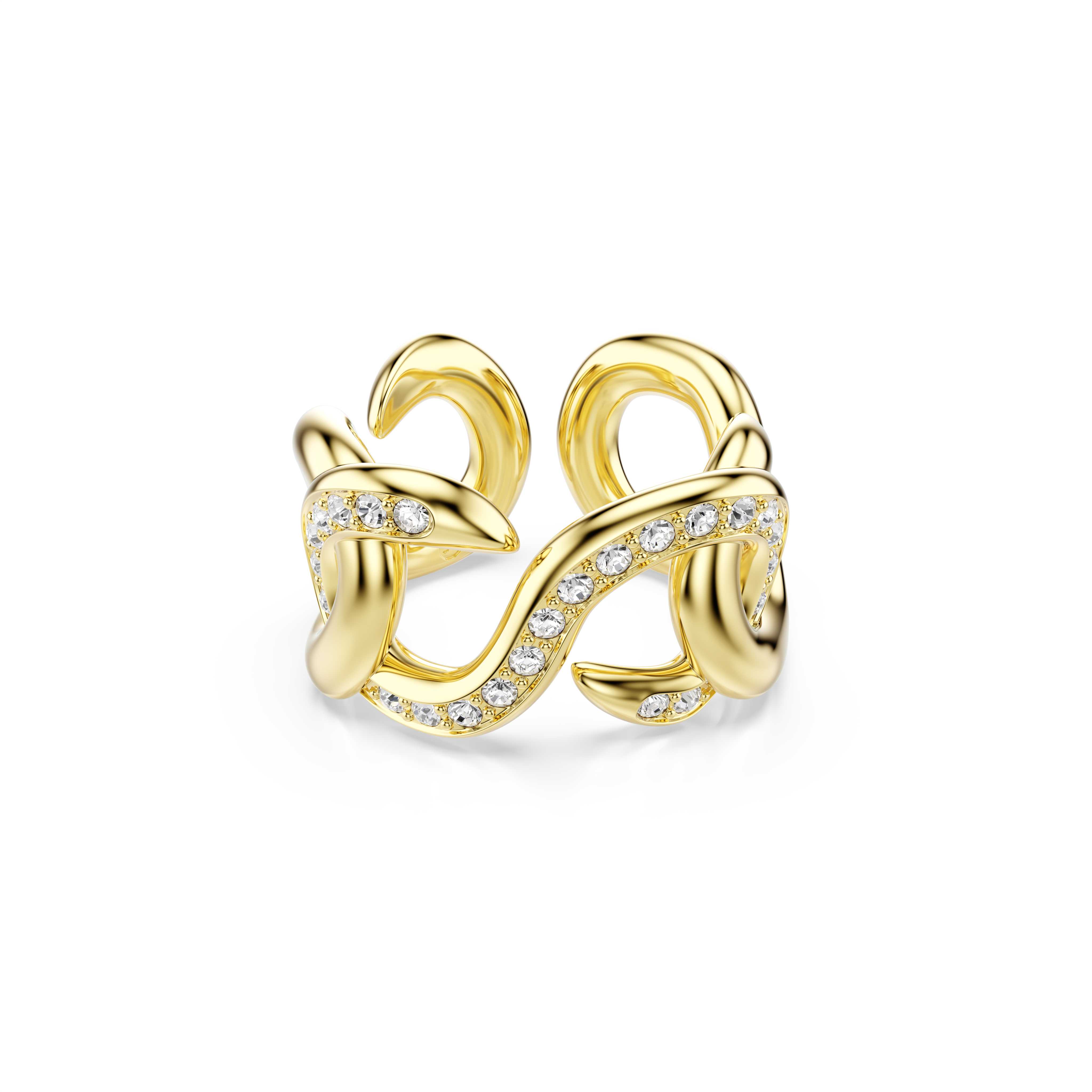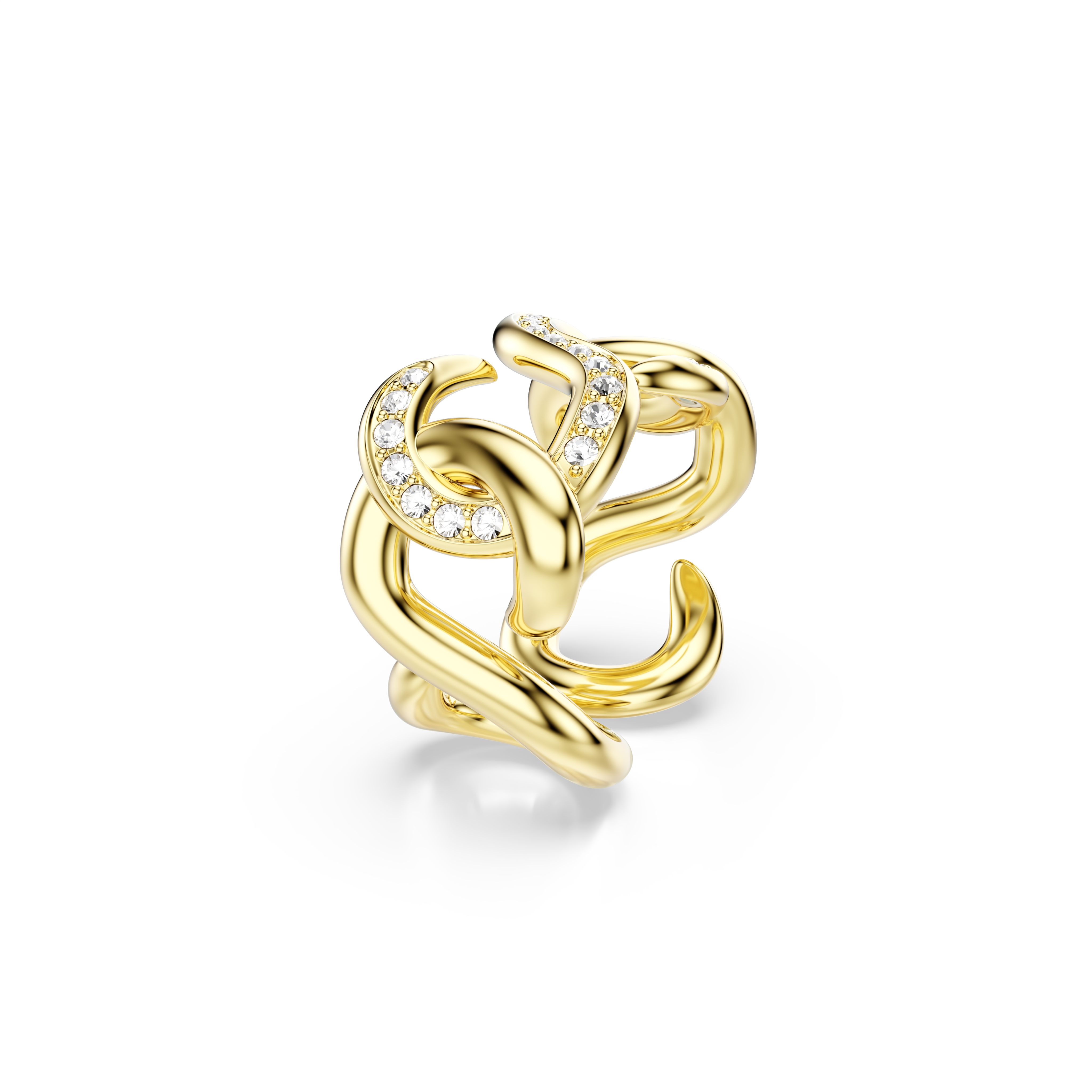Благодаря изящным звеньям и ослепительному блеску, это кольцо Swarovski — яркий способ заявить о себе. Металл с золотистым покрытием воплощает индустриальный стиль Dextera и инкрустирован прозрачными кристаллами для максимального сияния. Носите его с другими украшениями из нашей коллекции, выполненными в том же характерном стиле.