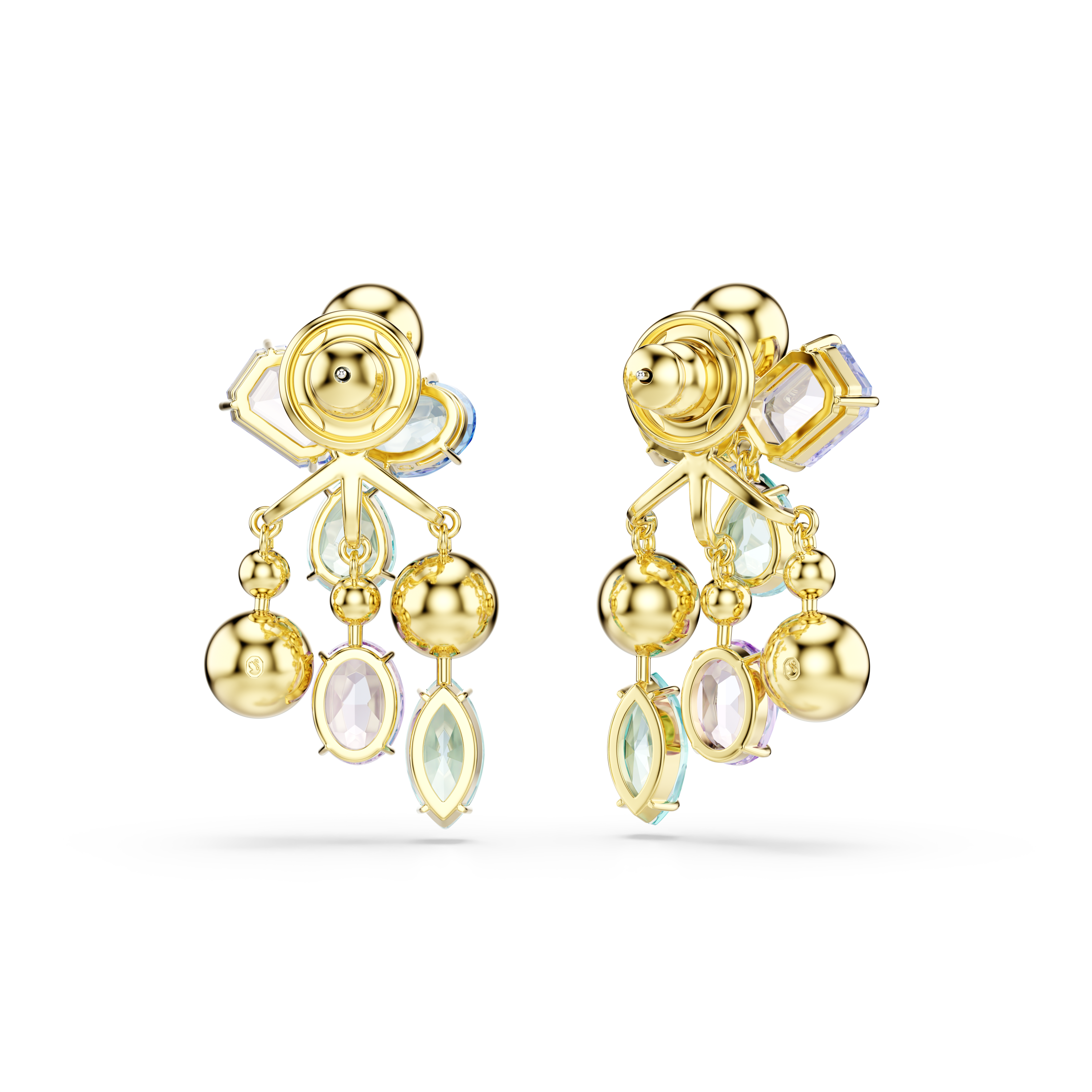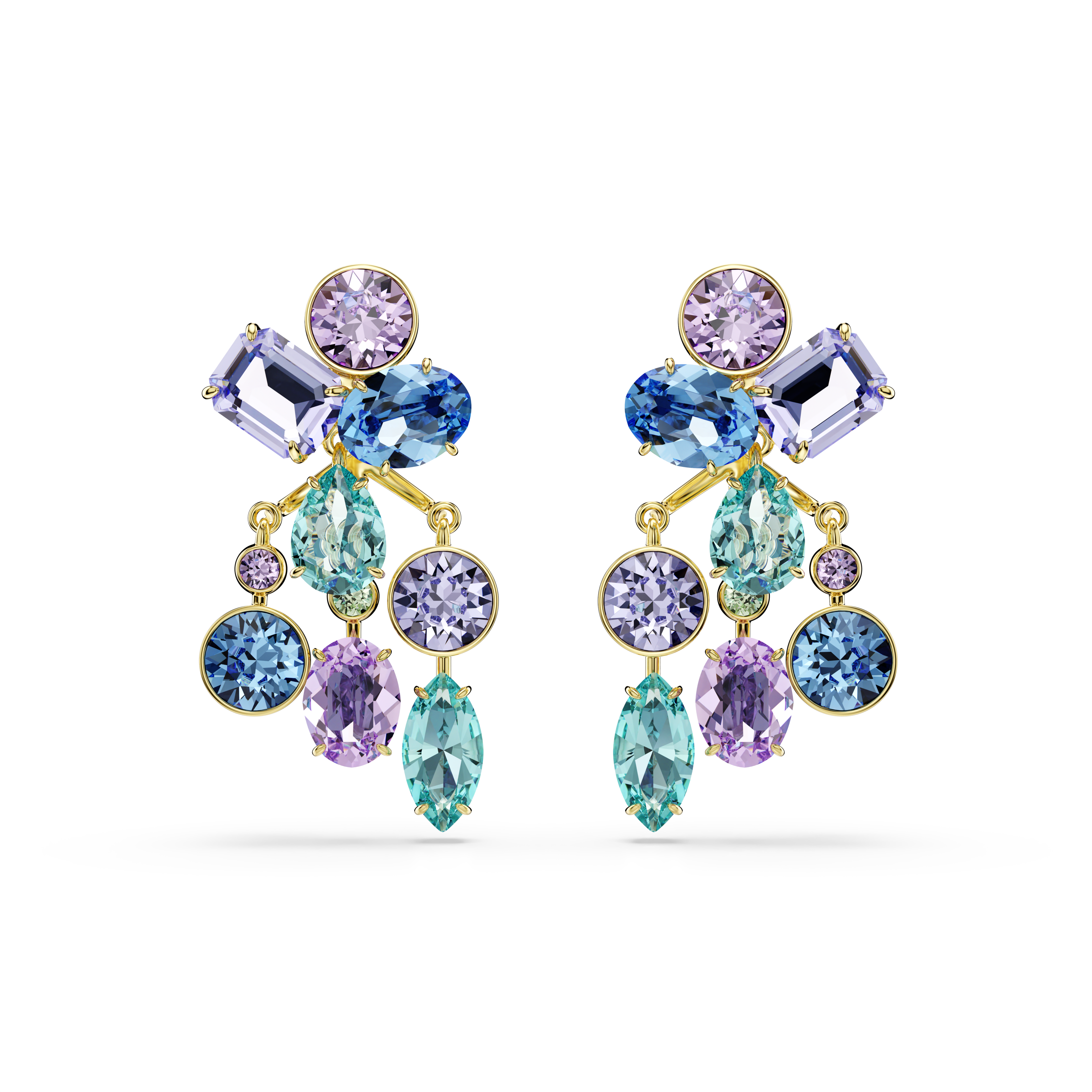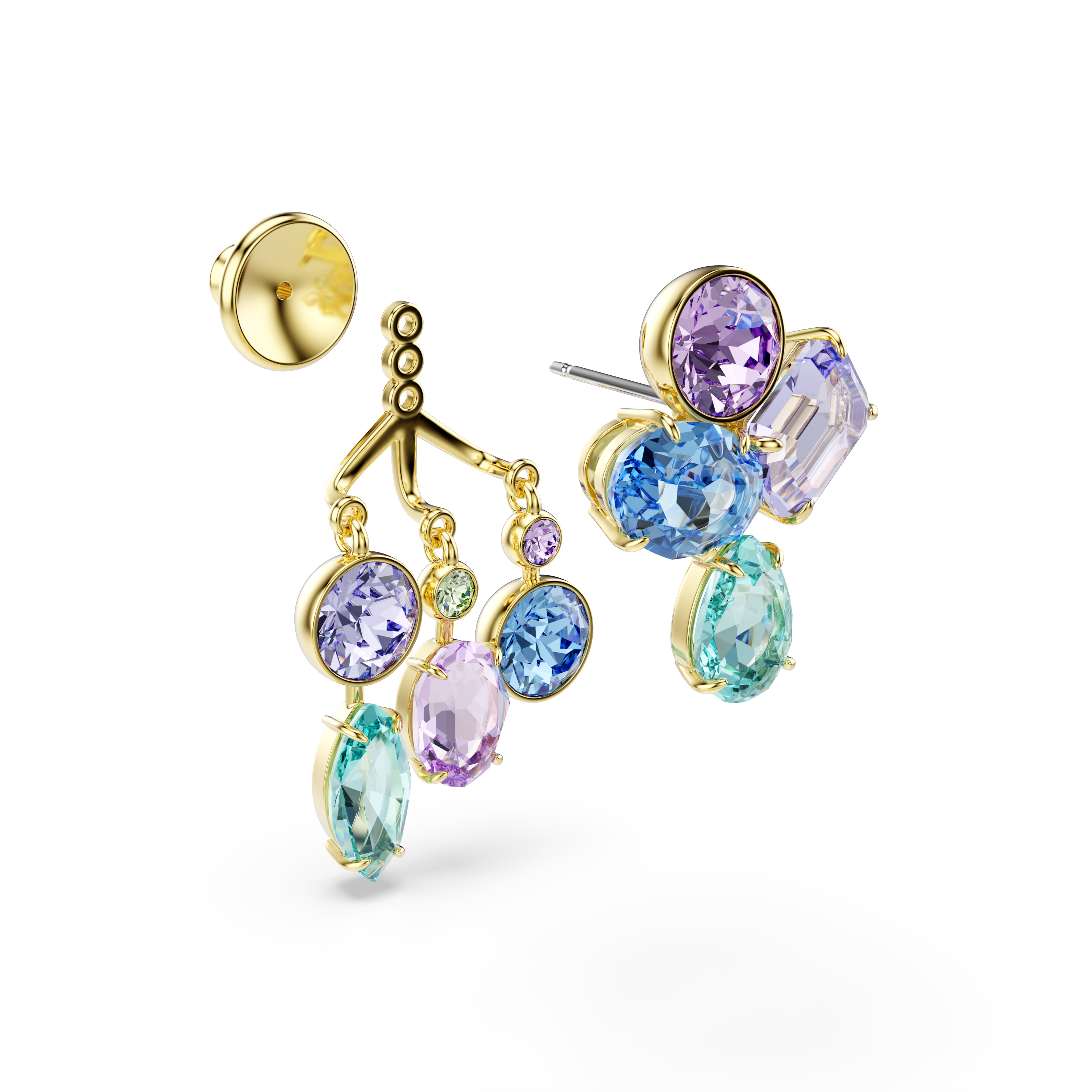 С этими универсальными серьгами Gema вы можете создать два неповторимых образа для дневного и вечернего выхода. Носите их как серьги-гвоздики, украшенные четырьмя разноцветными кристаллами с каждой стороны, или прикрепите к ним накладку для создания каскадного эффекта. В фирменном стиле Gema кристаллы представлены в различных формах и оттенках, что придает украшениям интригу.