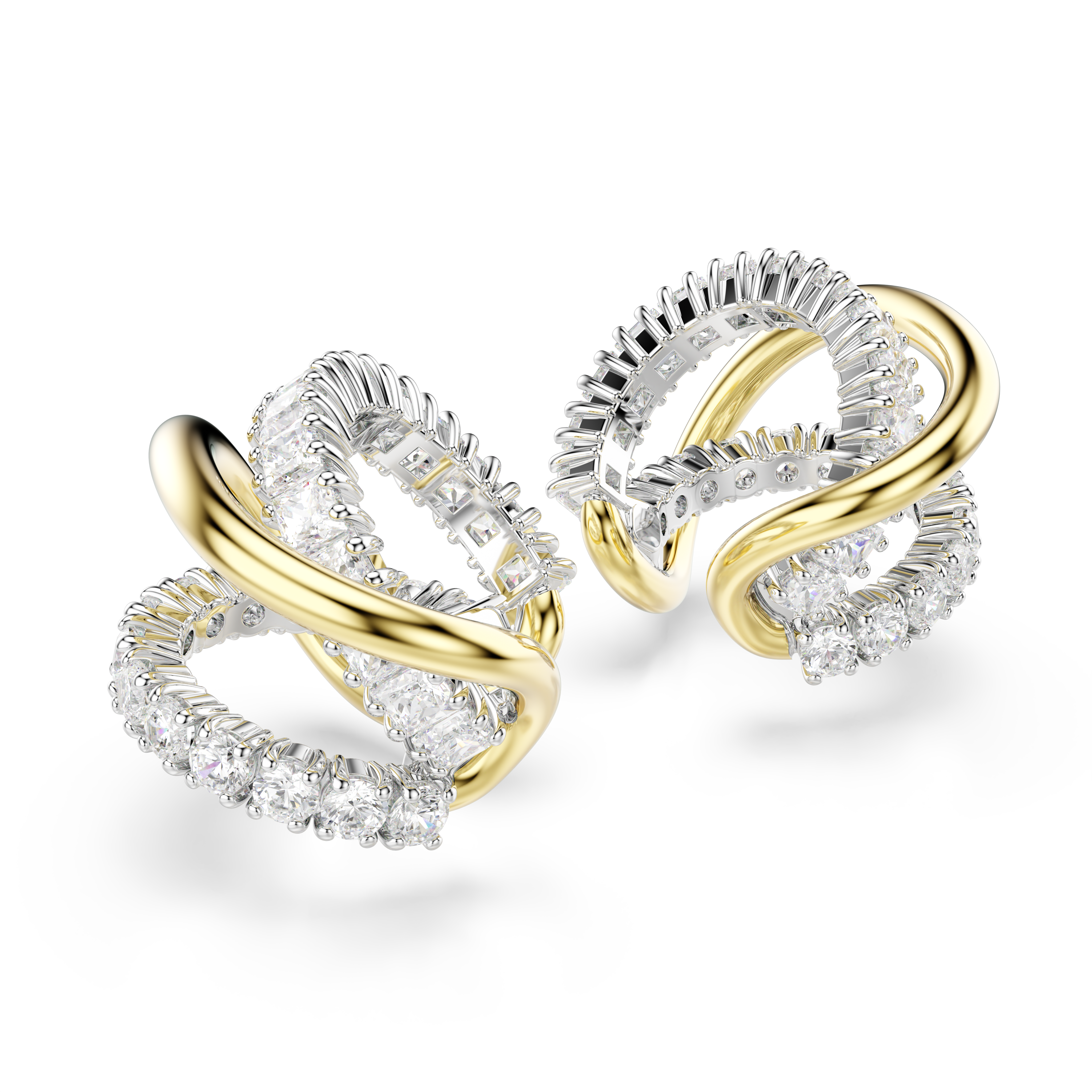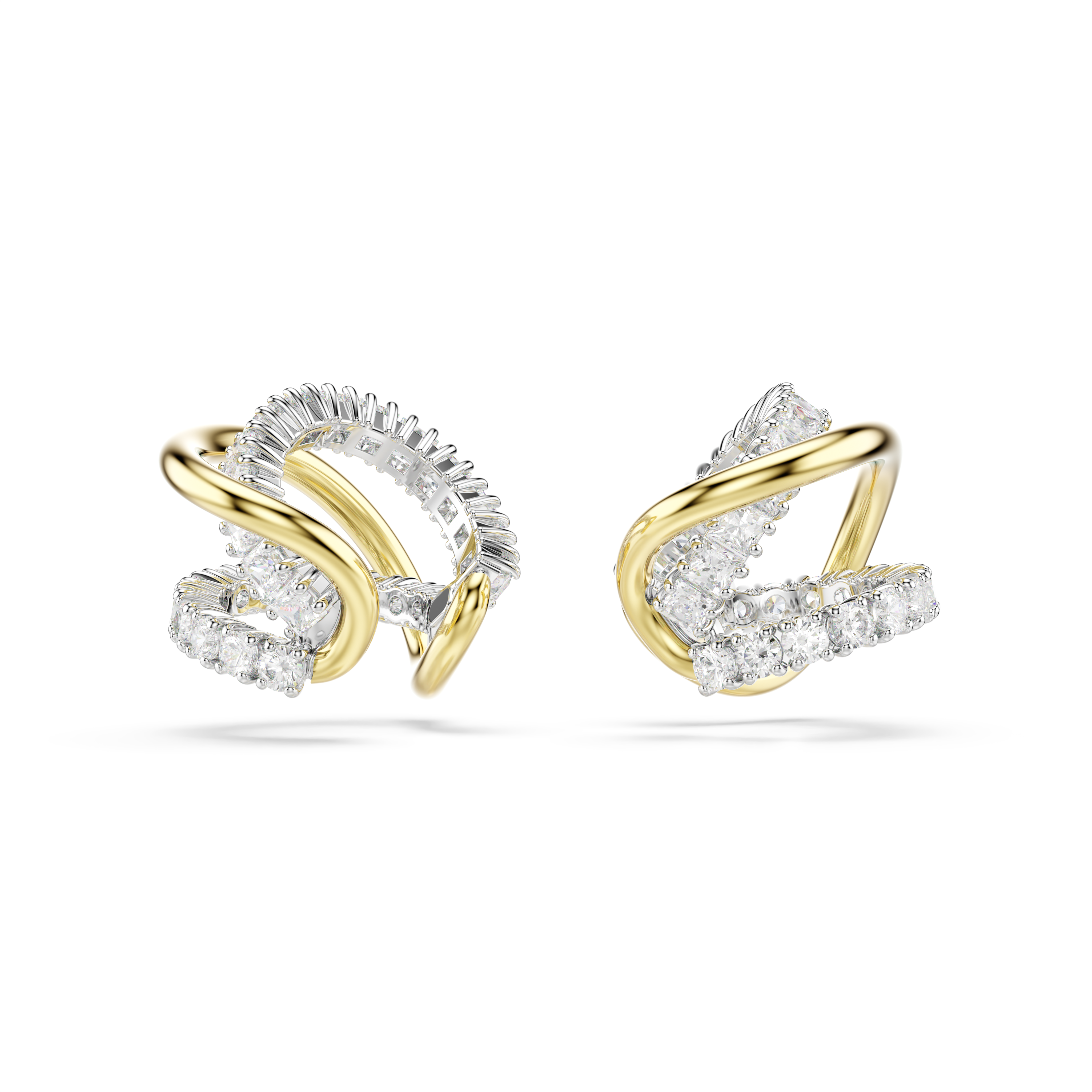 Благодаря своему неожиданному дизайну, эти серьги-каффы Hyperbola идеально подходят для создания смелого и современного образа. В каждом изделии витые металлические стержни сочетаются с сияющими кристаллами Swarovski различной огранки, придавая вашему образу движение и блеск. Носите их с подходящим колье или кольцом, чтобы подчеркнуть завораживающий эффект.