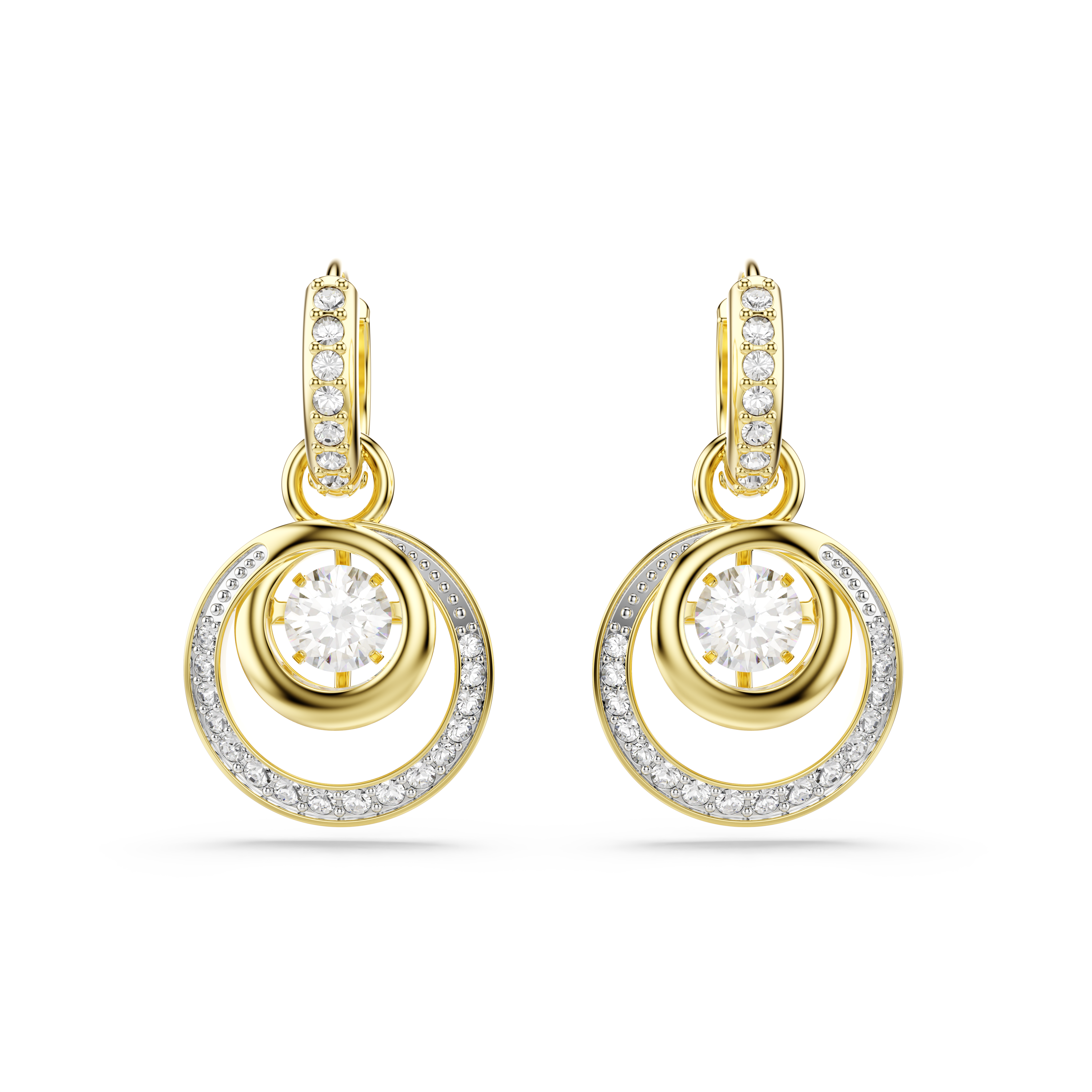 Добавьте динамики в свой стиль с помощью этих круглых сережек с золотым покрытием. Каждая серьга, соединенная с миниатюрными кольцами с паве, украшена центральным «танцующим» камнем, окруженным спиралями кристаллов разного размера. Носите их с подходящим колье или кольцом, чтобы подчеркнуть гипнотический эффект.