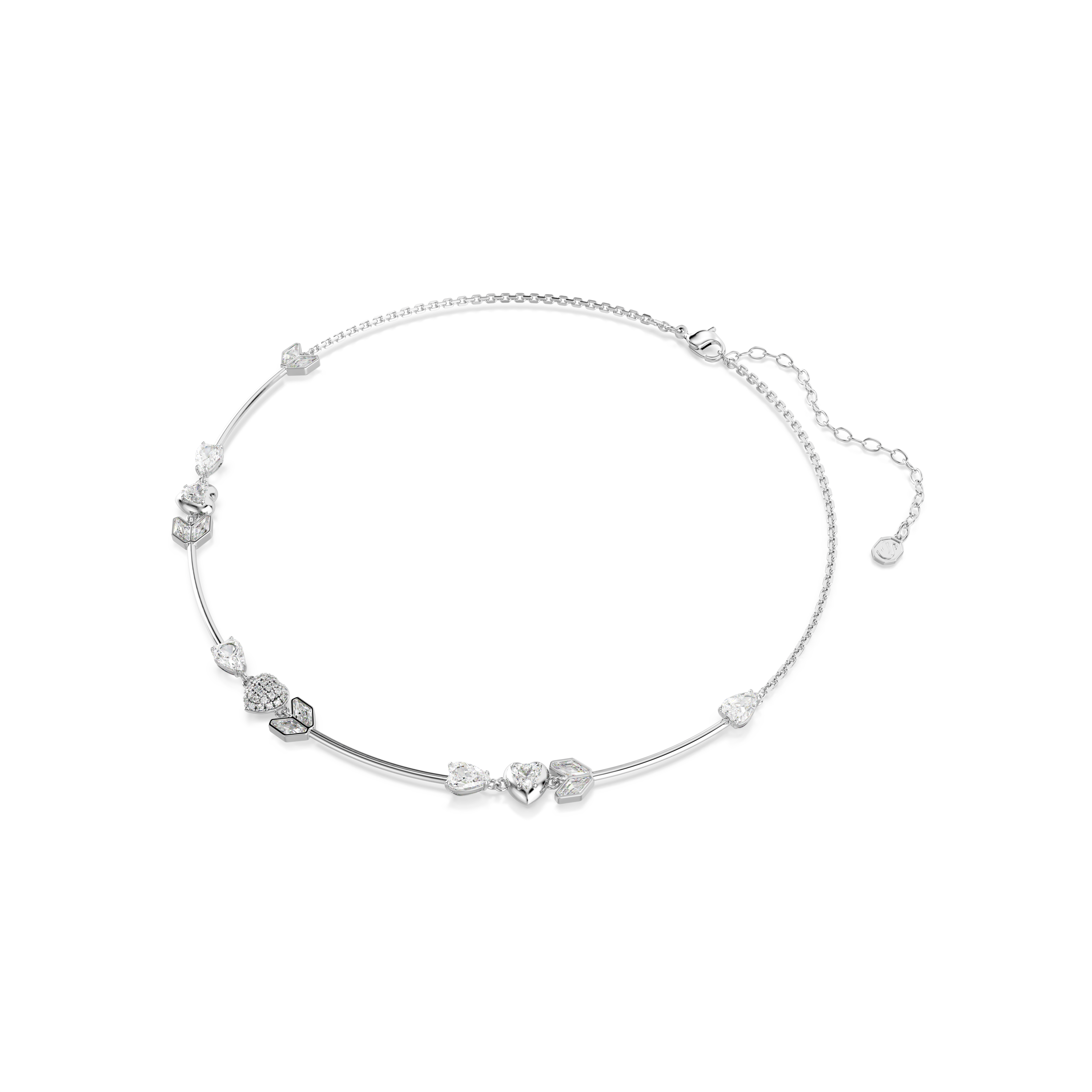 Это колье Swarovski напрямую призывает к любви благодаря своему украшению в виде стрел Купидона. Между каждой стрелой расположено сияющее сердце с различными выражениями, от металлических до выразительных. Весь дизайн представляет собой элегантное сочетание родиевого покрытия и прозрачных кристаллов, добавляя романтики в ваш личный стиль.