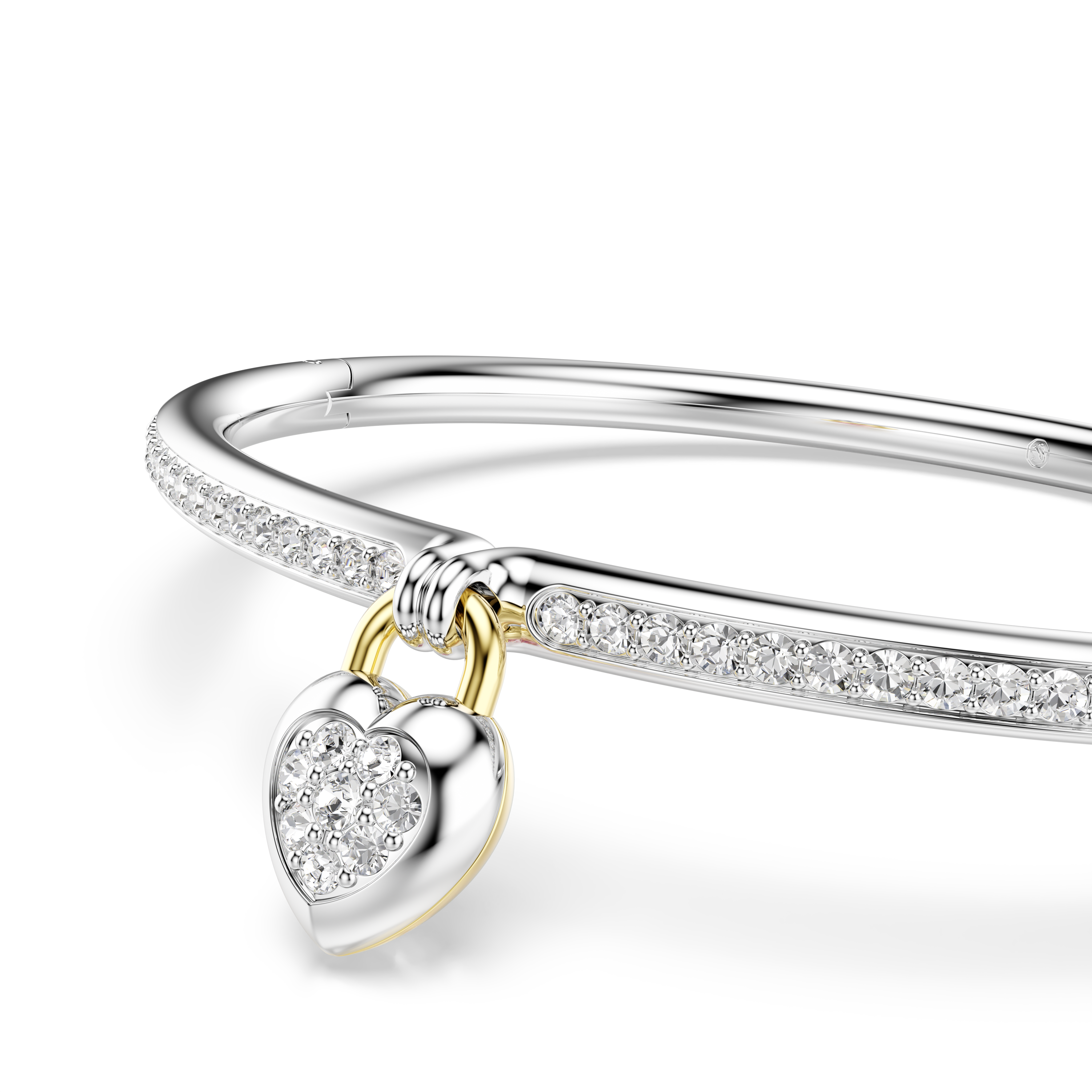 Этот изящный браслет, являющийся роскошным символом романтики, инкрустирован прозрачными кристаллами и украшен сердечком в форме медальона. Романтический мотив включает в себя розовый цирконий Swarovski с золотистым покрытием с одной стороны и прозрачные кристаллы с родиевым покрытием с другой. Носите его с подходящим кольцом, чтобы подчеркнуть любовь.