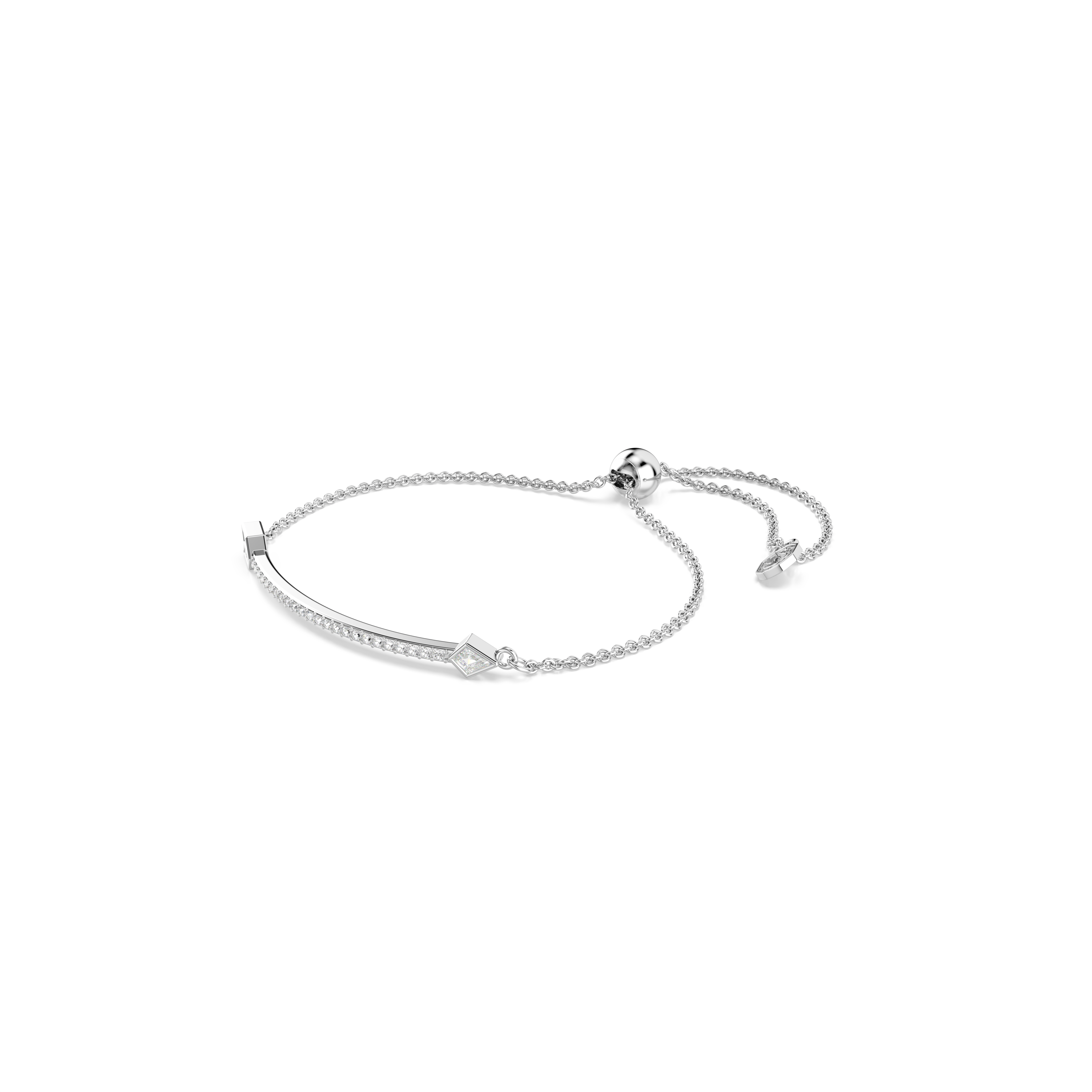 Этот браслет с родиевым покрытием, выполненный в форме стрелы Купидона, станет оригинальным дополнением к классической теме любви. Дизайн сочетает в себе гладкое родиевое покрытие и прозрачные кристаллы разных размеров, а скользящая застежка позволяет регулировать размер браслета. Носите его отдельно или сочетайте с другими украшениями в форме стрел из той же коллекции Idyllia.