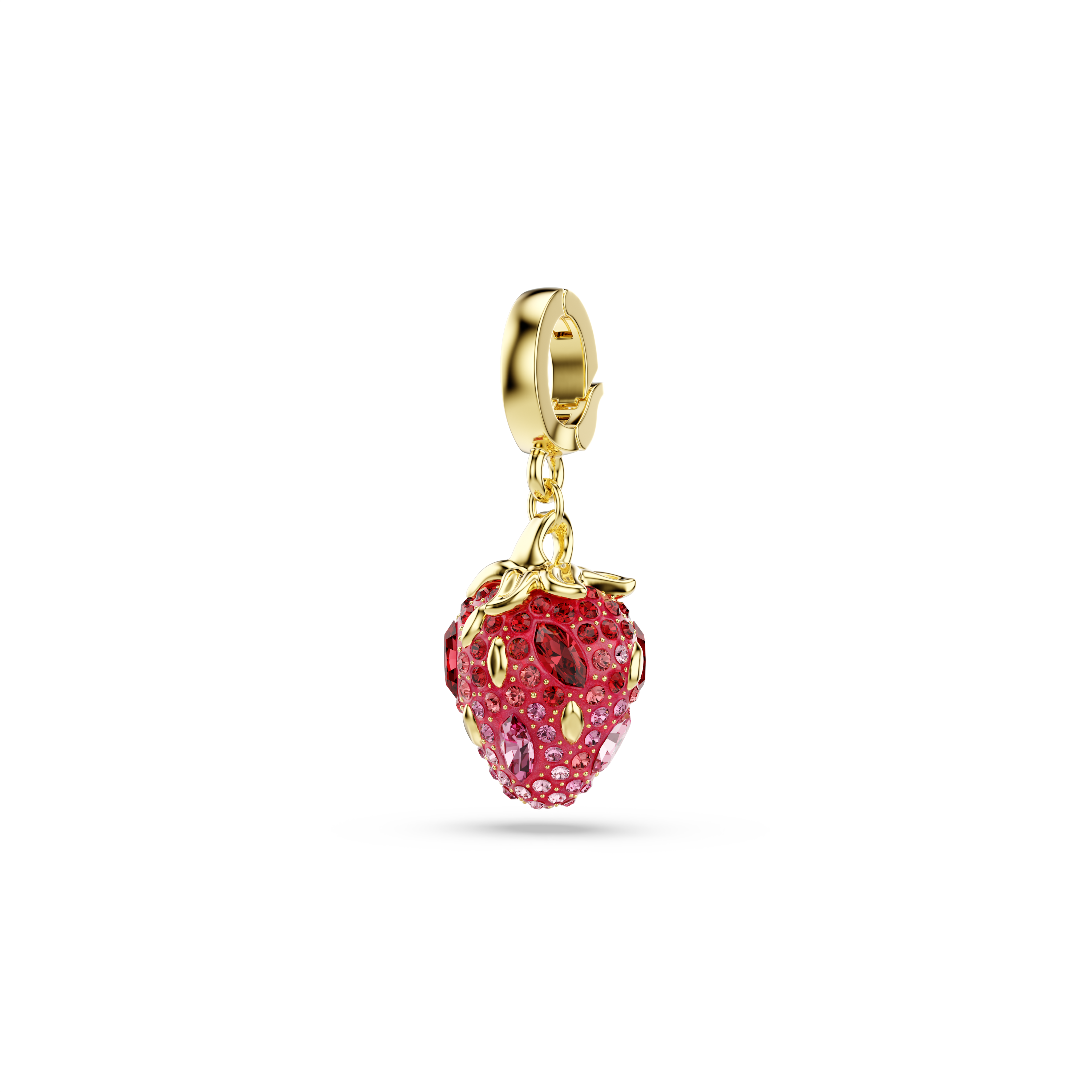Этот восхитительный кулон в виде клубники добавит индивидуальности вашему повседневному стилю и идеально подойдет тем, кто хочет окунуться в сладкую атмосферу природы. Украшенный четырьмя оттенками розового и красного паве, а также реалистичными позолоченными и кристаллизованными зернышками, кулон имеет специально разработанную застежку, позволяющую носить его на различных ожерельях и браслетах.