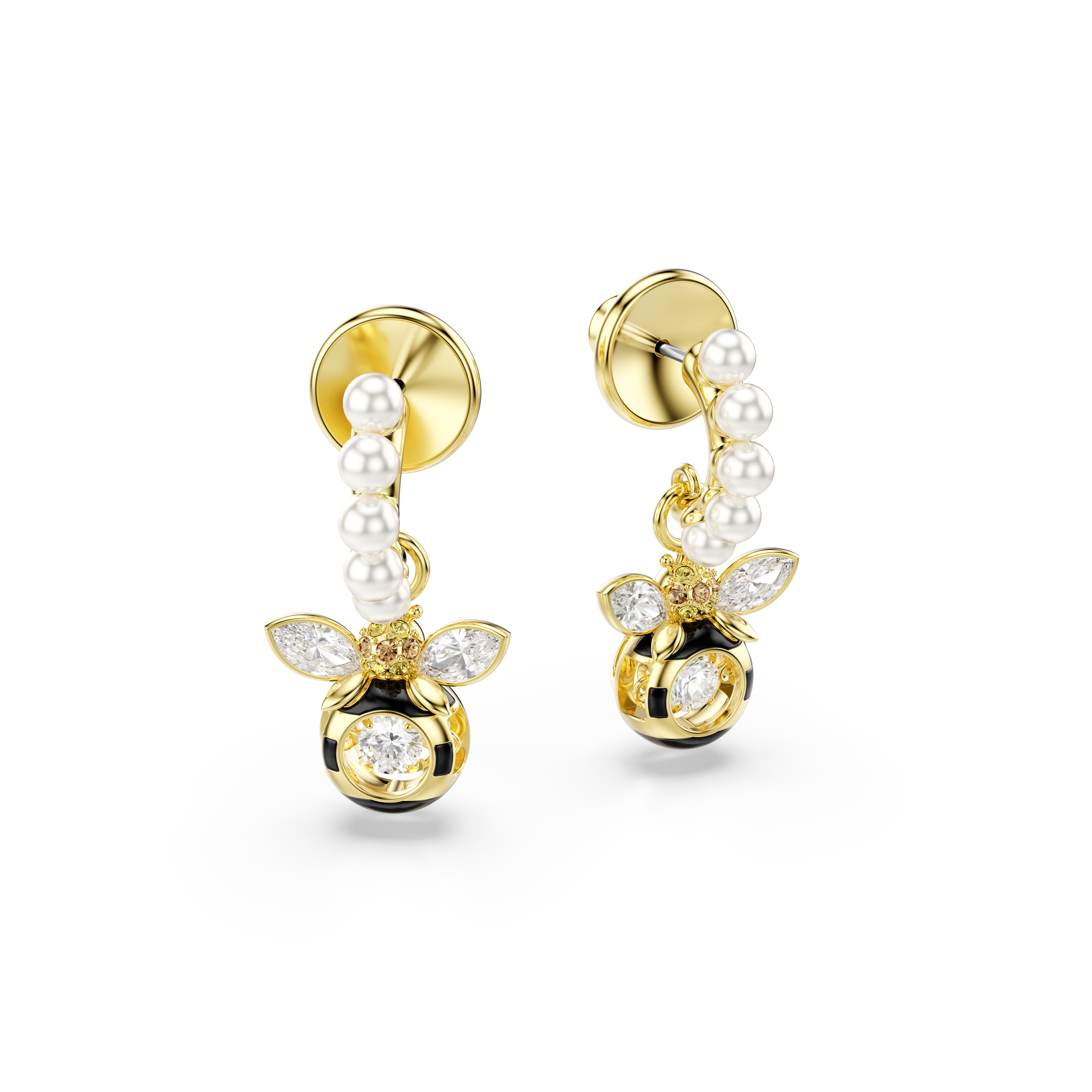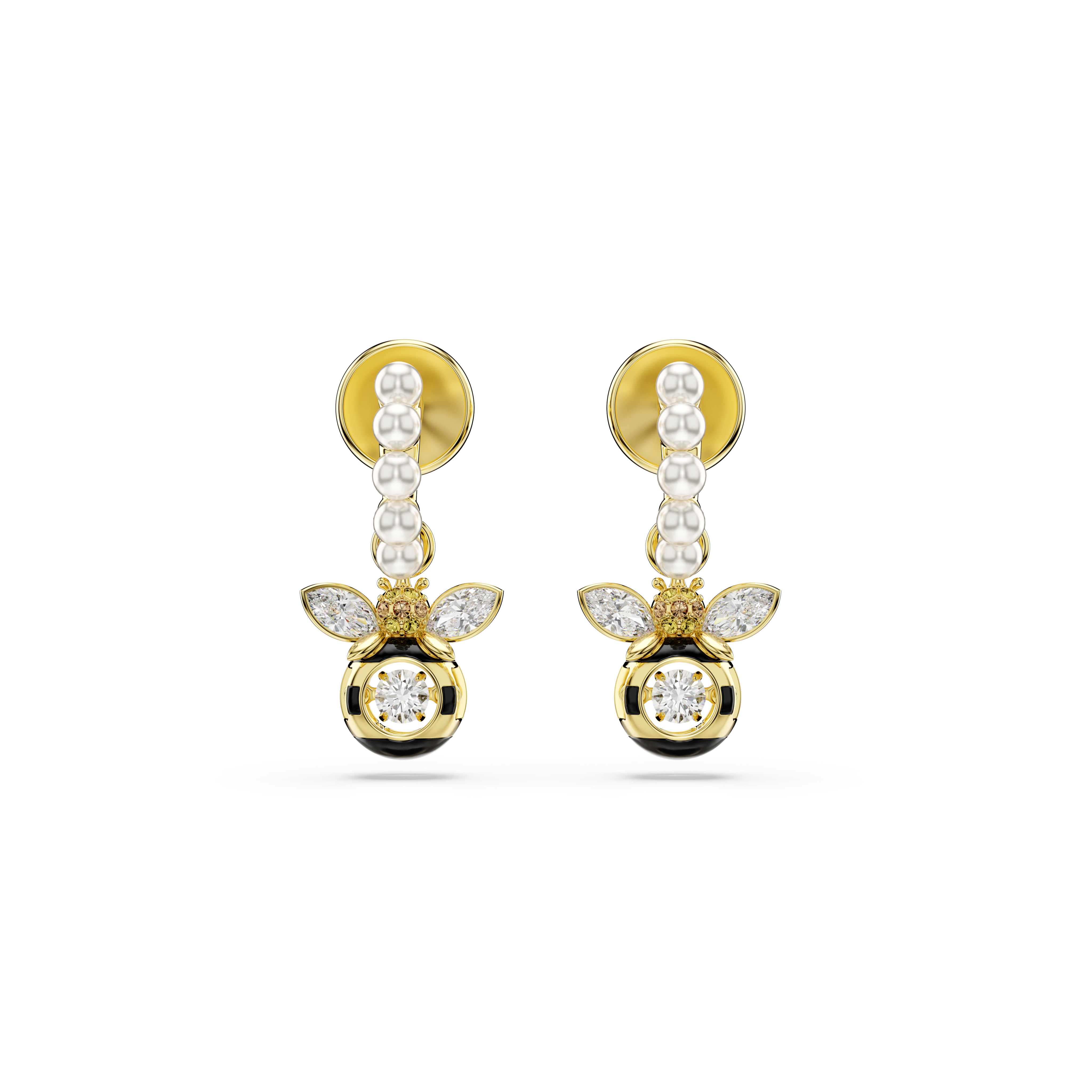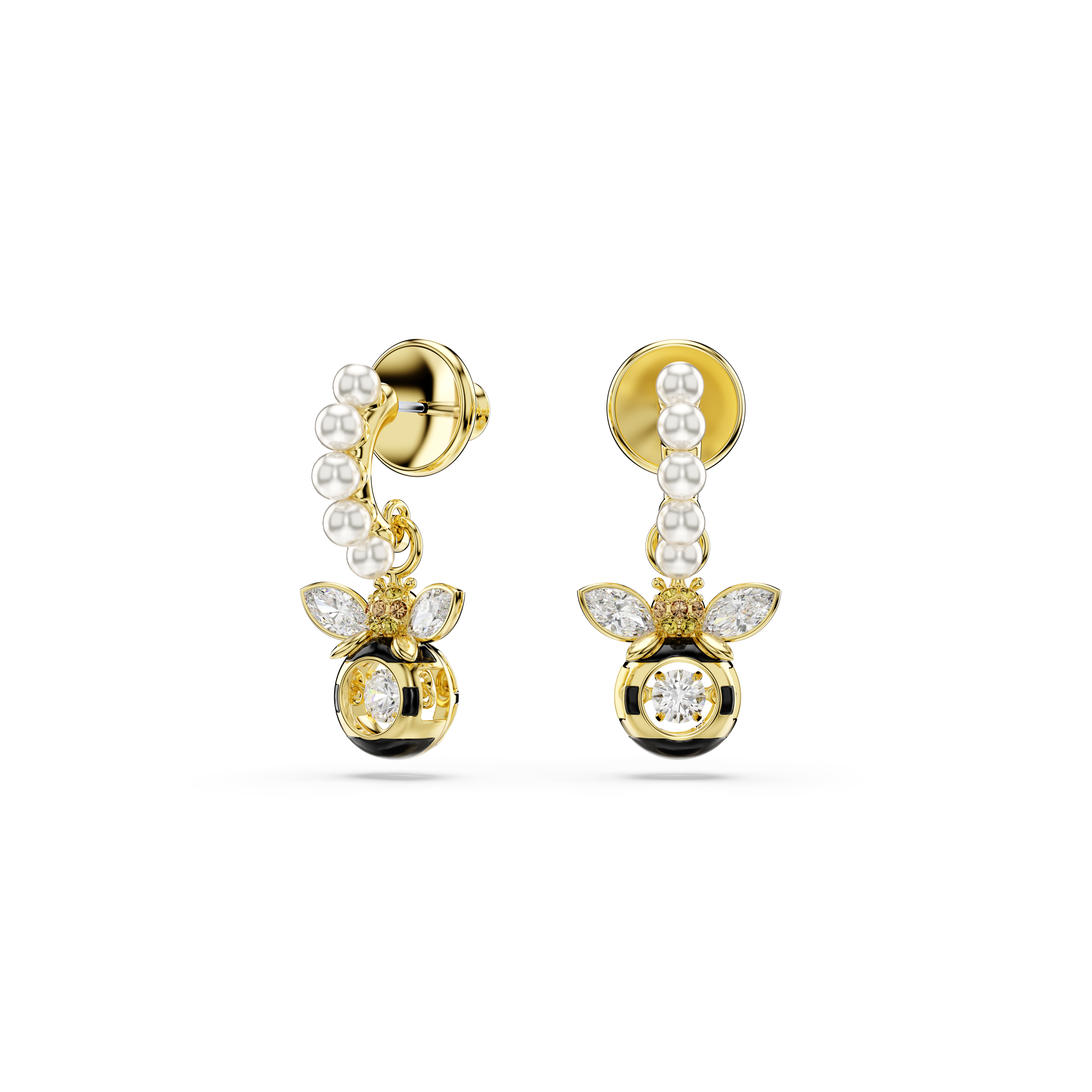 Эти очаровательные серьги Idyllia сочетают в себе две трудолюбивые пчелки, переливающиеся светом. Каждая пчелка с золотистым покрытием закреплена на миниатюрном кольце, украшенном микроскопическими кристаллами Swarovski, а в центре расположен прозрачный сверкающий камень, создающий бесконечные блики. Сочетайте их с чокером, кольцом или браслетом в виде пчелок, чтобы создать целую коллекцию украшений, вдохновленных природой.