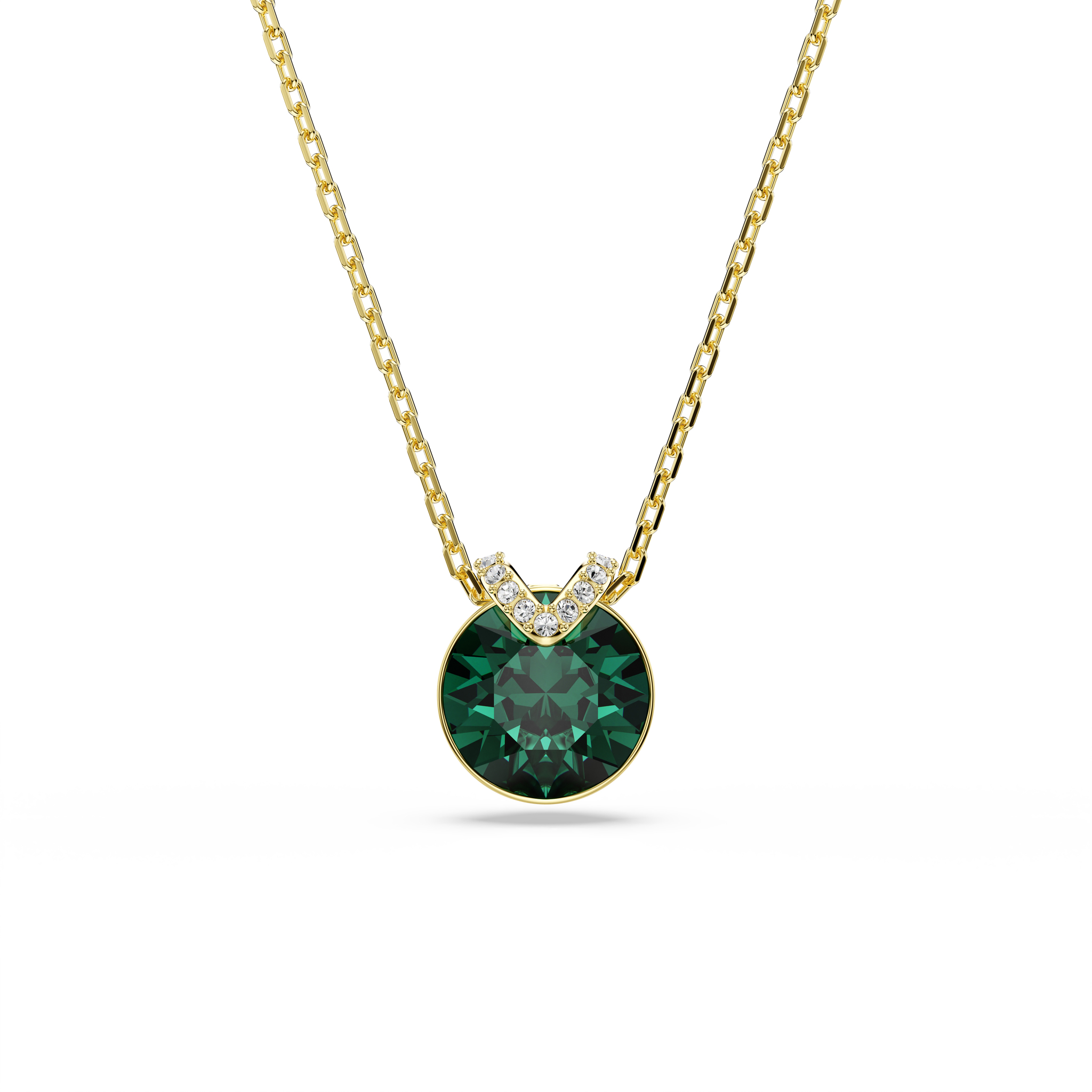 Эта завораживающая подвеска в форме буквы V привлекает внимание благодаря центральному зеленому кристаллу, оправленному в золотое покрытие. Росчерк мерцающего паве добавляет дополнительный слой красоты, а изящная цепочка излучает чистую элегантность. Носите его вместе с подходящими серьгами для создания чудесного сочетания.