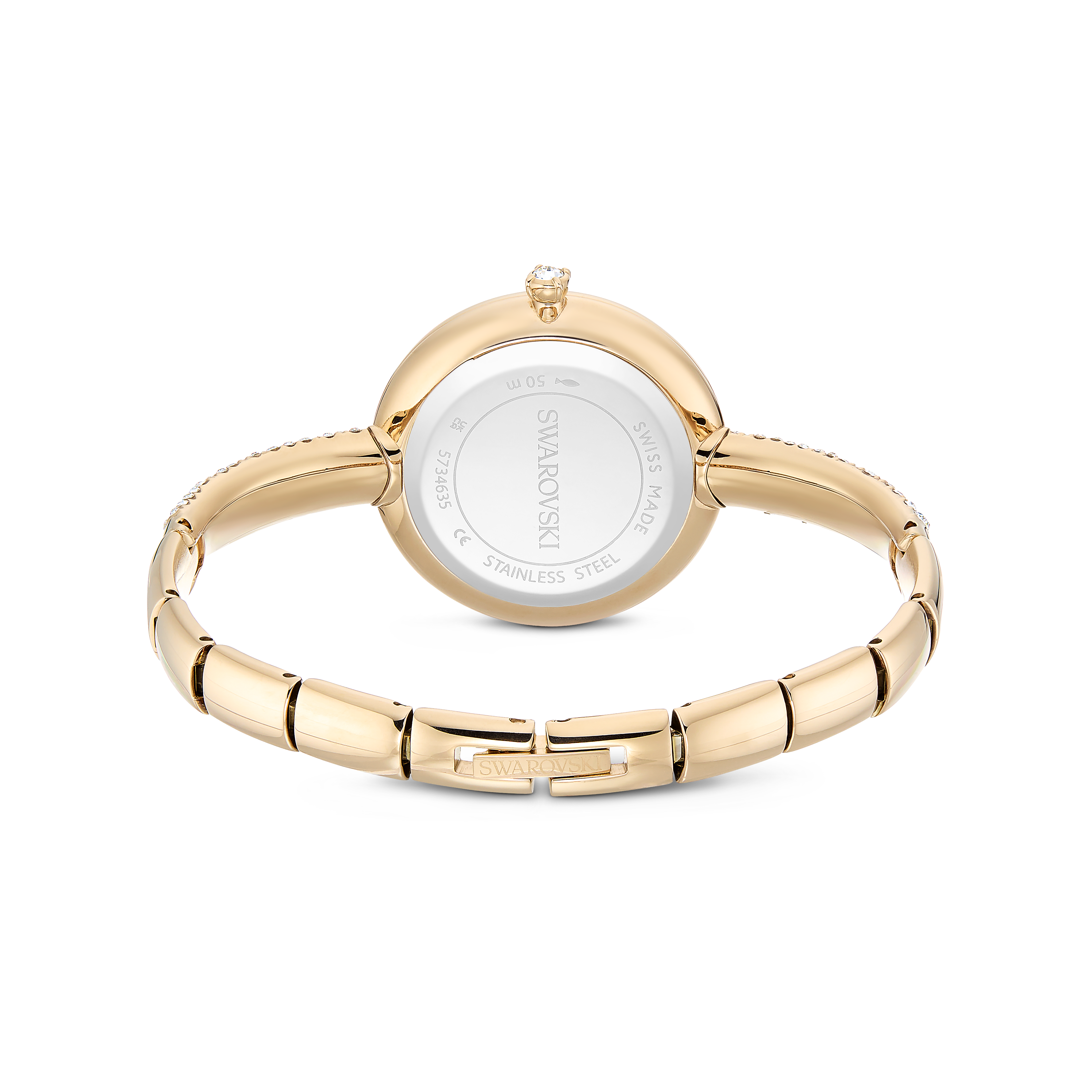 Эти часы Sublima, созданные с учетом простоты и сияния, выполнены из нержавеющей стали с отделкой цвета шампанского золота и имеют изящный закругленный корпус диаметром 28 мм. Циферблат с эффектом солнечных лучей искусно украшен тремя кристаллическими индексами и эмблемой лебедя, а тонкий браслет инкрустирован примерно 168 кристаллами в узоре «Метеора». Эти швейцарские часы водонепроницаемы до 50 метров и представляют собой стильный аксессуар для измерения времени.