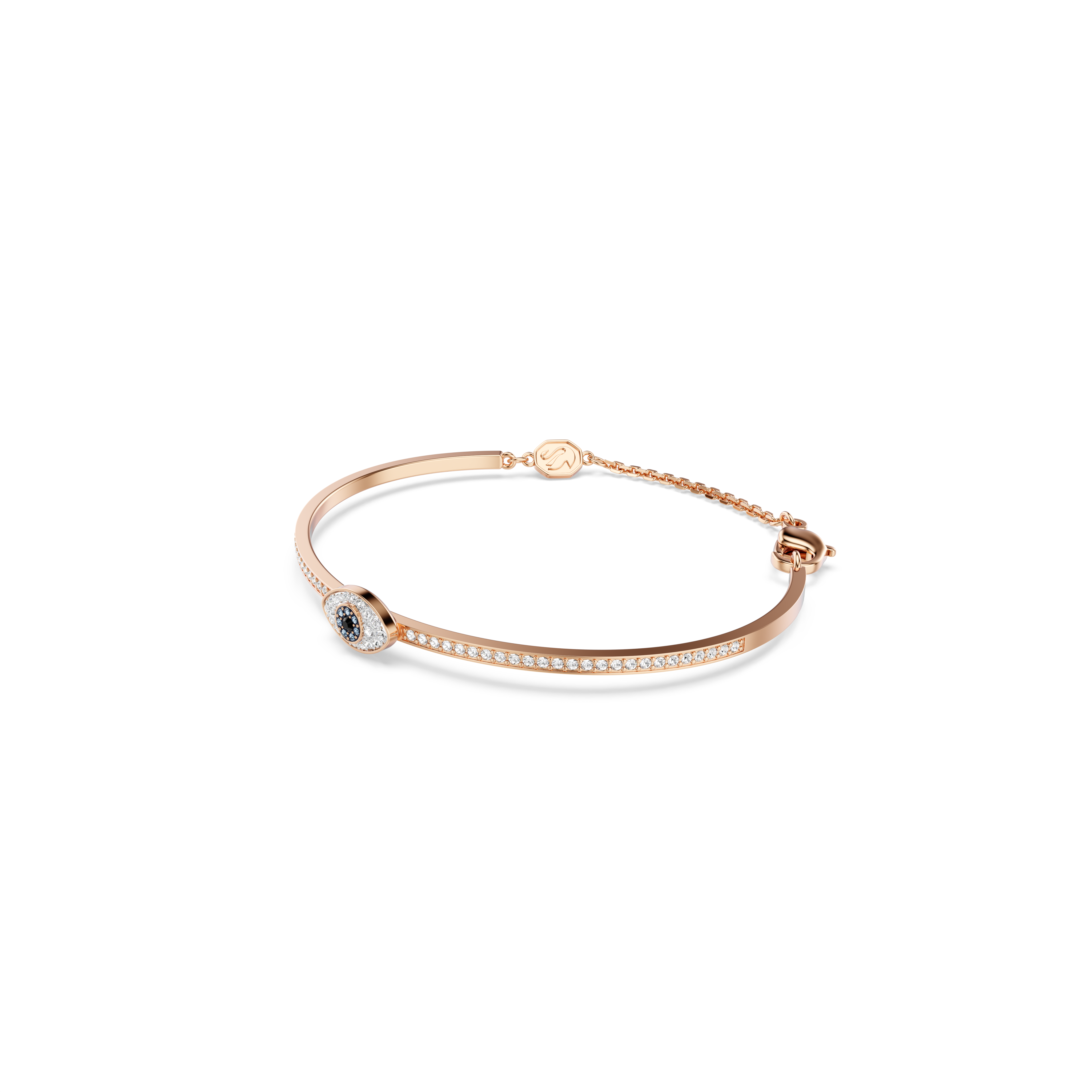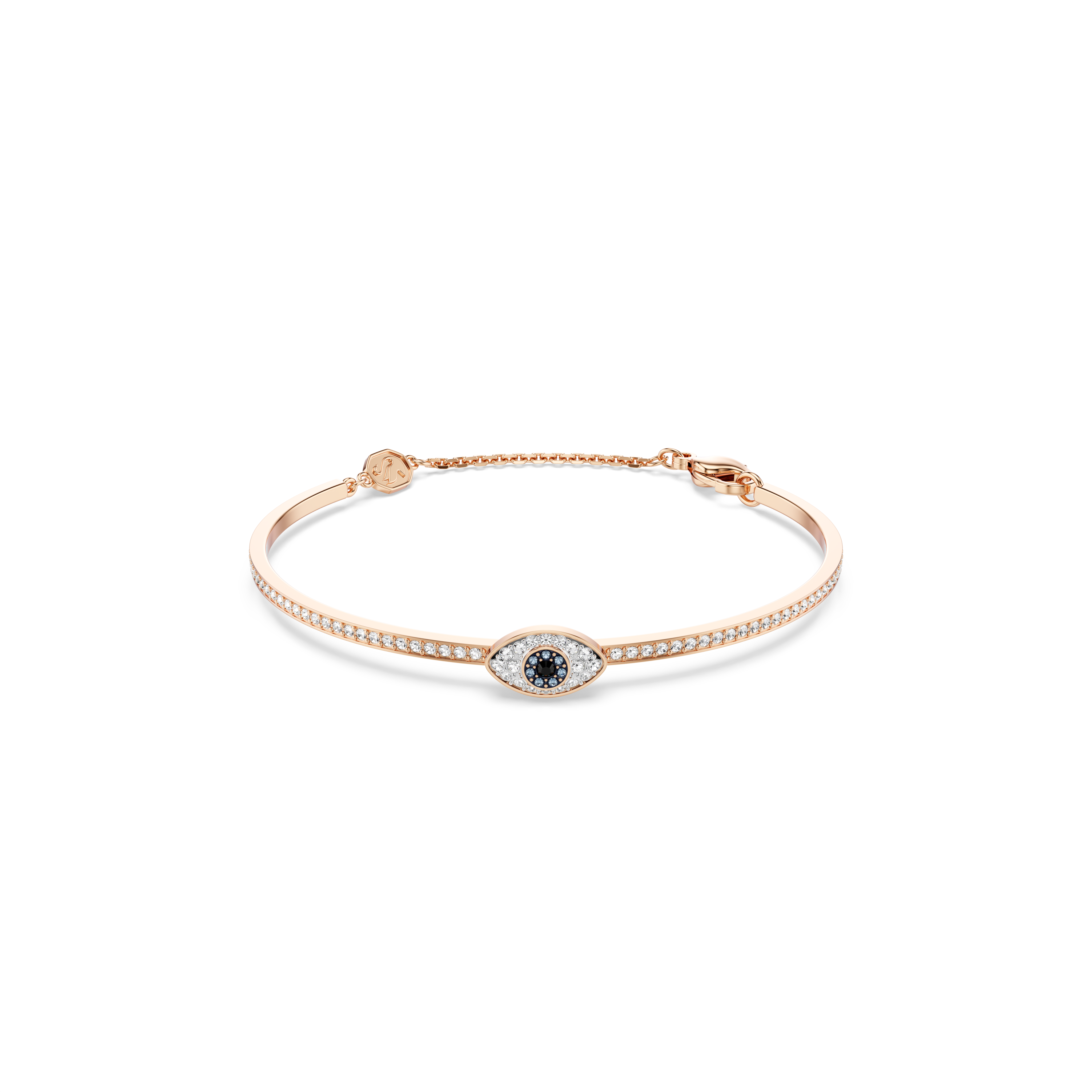 Окутайте себя позитивом с этим браслетом Symbolica. Это украшение с покрытием цвета розового золота имеет полосу с паве и выпуклым «глазом зла» в центре, украшенным прозрачными, синими и черными кристаллами паве. Цельная полоса снабжена регулируемой цепочкой для комфортной и индивидуальной посадки. Носите это украшение, чтобы каждый день приветствовать позитивную энергию.